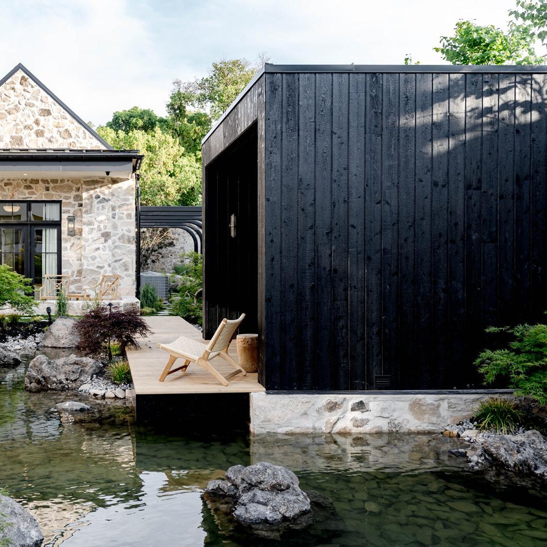 Yakisugi (Shou Sugi Ban) – Our charred Japanese Cypress cladding remains the most popular choice for outdoor saunas. The traditional fire-treatment creates a deep charcoal finish that's brushed off, exceptional weather/UV resistance and virtually zero maintenance, particularly with the black finish.